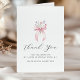Elegantens rosa buggar accentuerad med rosa och blåa vilda blommor dekorerar detta födelsedagskalas tack. Klassisk kalligrafi-spådomar tack. Med tre linjer text kan du anpassa ett tack till påstående och ditt namn.