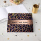 Elegant, glamorös och feminin i 100:e födelsedagsfesten med brunt, gyllene och svart leopard, dekorerat med guldkonfetti. Mall för namn och ålder 100. Ett faux bronze metallic tittar band. Svart skrift av stil, brev. Rygg: lägg till din egen text.