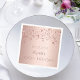 En papper napkin för en gigantisk och glamorös inställning för bord i 100 födelsedagsfester. En faux-metall i ro tittar bakgrund med mousserande och droppande stjärnor i elegant ro guld. Texten: namn är skrivet i mörk ro guld med ett modernt handskript i stil. Tempera för 100-årsålder.
