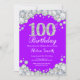 100:e födelsedagsinbjudan Lila Silver Diamond Inbjudningar