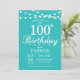 100:e födelsedagsinbjudan Teal Aqua Turcos Inbjudningar