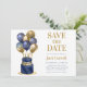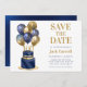 Den här fantastiska manar 100:e födelsedagsfesten Spara datumkortet med en 2-lagrars marinblått och guld tårta med marinblå ballonger och guld-ballonger och nummer 100 i guld skulle vara perfekt för att be människor att lägga detta speciella datum åt sidan för den kommande 100:e Födelsedagsfesten. Det är traditionellt och klassiskt samtidigt som det är färskt, modernt och contemporary. Baksidan är en samordnande marin blå folie.