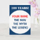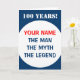 Lustigt 100:e födelsedagskortet för manar | Mannen myten legendariska hälsningskort. Humoriserad kortidé för pappa, morbror, farfar, bror osv. Anpassningsbar önskemål text som Grattis på födelsedagen. 100 år.