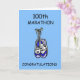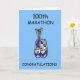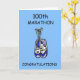 Ett tecknad par träningsskor bundna vid snöre och ord 100:e maratonGrattisen. Bilden har en blå bakgrund för färgaden.
