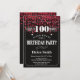 100. födelsedaginbjudan för rött glitter inbjudningar