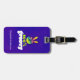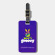 En bagagetagg med coola personlig med en typografisk design som innehåller ett regnbåge med finger upphöjt i ett V. Text säger 100 % groovy i ett funky-teckensnitt. Psykedelisk hippie-temadesign. Ställ in på en mörk-lila-färg-bakgrund med tonsyra.