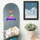 En vinyldekalk med en typografi med tre coolor som innehåller ett regnbåge med finger upphöjt i ett V. Text säger 100 % groovy i ett funky-typsnitt. Psykedelisk hippie-temadesign.