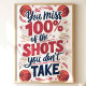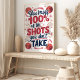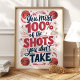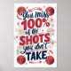 Tänd din inre mästare med denna kraftfulla basketbollsinspirerade motivationsaffisch. Med den ikoniska citatet "Du missar 100% av skotten du inte tar" i fet typografi, är detta tryck en dynamisk påminnelse att ta itu med utmaningar, ta risker och aldrig ge upp dina mål. Perfekt för att lägga till en touch av inspiration i hemmet, kontoret eller gymmet för alla sportentusiaster.