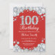 100. Röd födelsedaginbjudan och silverdiamant Inbjudningar