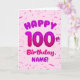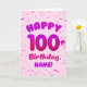 Celebrate their 100th birthday milestone with a bright, cheerful, and personalizable birthday card! This custom name birthday card features a bold number one hundred balloon and colorful confetti.