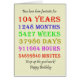 104 års födelsedagskort som räknar ned år, dagar, månader, timmar och minuter. Ett kort till tankepaus i ge! Man har tagit hänsyn till läderåren!