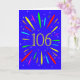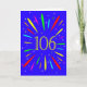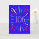 Ett explosivt 106-års födelsedagskort! Vilket underbart sätt att skicka födelsedagsgratulationer. Siffran 106 i ljust gult med en explosion av starka färger och stjärnor.
