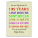 109 års födelsedagskort som räknar ned år, dagar, månader, timmar och minuter. Ett kort till tankepaus i ge! Man har tagit hänsyn till läderåren!