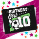 Denna fotbollsfödelsedagsdesign är perfekt för en 10-årig flickas fotbollstema födelsedagsfest för att fira hennes 10-årsdag! Bra för barn som älskar att spela fotboll, titta på fotboll eller framtida fotbollsstjärnor! Funktioner en fotboll på en fotbollsplan grafik med nummer 10 för en flickas 10-årsdag.