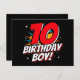 Denna coola 10-årsdag pojke design är perfekt för en superhjälte födelsedagsfest tema! Bra för alla 10-åriga pojkar som älskar serietidning superhjältar eller skurkar med superkrafter! Innehåller 10-årsdag '10 Födelsedags Pojke!' glad födelsedag citat i en serietidning superhjälte tema som den 10-åriga super födelsedags pojken kommer att ÄLSKA!