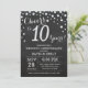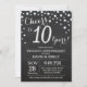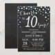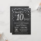10-års bröllopsdag Inbjudan med Kritskrifttavla Svart och Silver. Tionde bröllopsdagen. Kritskrifttavla Svart och Silver Glitter Diamant Bakgrund. Silver Konfetti. Födelsedag för vuxna. Kvinnlig eller manlig födelsedagsfest. För ytterligare anpassning, klicka på "Anpassa"-knappen och använd vårt designverktyg för att ändra denna mall.
