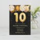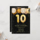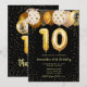 10-års födelsedagsinbjudan, ballong svart guld 10-års födelsedagsinbjudan, konfetti födelsedagsinbjudan utskrivbar, prickig födelsedagsinbjudan