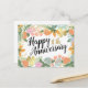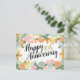 Vackra blommigten vår i blomblad, med rosa och persikor ro, olika viskväxter och två lycka till klöver. Fint "Lycklig-årsdagen" är ett färgkort för dina vänner, familjer, föräldrar eller mor- och farföräldrar.