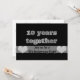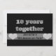 Skapa din egen personliga diamant-årsfirande inbjudan till tioårsdagen - På framsidan finns 3D-text som ser ut som grått borstat metall, tenn eller aluminium. Den lyder "10 år tillsammans". Över en genomskinlig remsa i svart med skuggade bokstäver står det "Du är inbjuden till en årsfest". Falska diamant-hjärten pryder varje ände. Baksidan har svarta, 3D-utseende bokstäver för din anpassade, moderna information om 10-årsjubileumspartiet. Anpassa som du vill. Besök vår onlinebutik angela65 Zazzle för massor av andra årsfesttillbehör för tioårsjubileum.