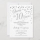 10-årsjubileum för bröllop inbjudan Elegant design med falskt glitter silver och vitt. Skål för 10 år!