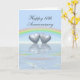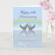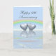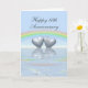 Kort med min bild av två hjärtan av tenn eller aluminium som flyter på vattnet under en regnbåge.
