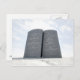Två stentablets med de tio commandmentsna som är inskrivna på dem anseende i brun ökensandinfront av en blå himmel