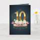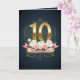 Det här fantastiska 10:e årsjubiléet i bröllop har en djup marin blå bakgrund. En framstående "10" skiner i strålande guld, centrerad på konstruktionen. Nedan skapar en lush arrangemang av grå vita ponnyer och rosa ros en pulserande visning för blommigt. Ett flytande band av rosa snurrar över blommorna och visar elegant "Lycklig-årsdagen" i skript. Ett invecklat gyllene dammmönster jämnar ut sig bakom huvuddelen av inslag och tillför en lagrar av sofistikerad elegans.