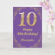 10:e födelsedag Lila och Guld Glitter Ram Kort