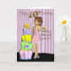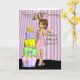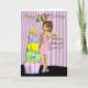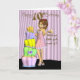 10:e födelsedag, liten flicka med Grattis på födelsedagen Card med stor kaka och kopp-tårta
