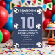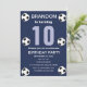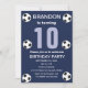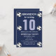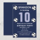 Tionde Födelsedagsfesten för en fotboll fläkt, sport, barn, pojkar, för honom. Vit, modern inbjudan till elegant födelsedagsfest. Anpassa den med din information.