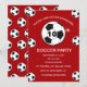 Tionde Födelsedagsfesten för en fotboll fläkt, sport, barn, pojkar, för honom. Röd och vit, modern inbjudan till elegant födelsedagsfest. Anpassa den med din information.