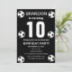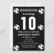 Tionde Födelsedagsfesten för en fotboll fläkt, sport, barn, pojkar, för honom. Svartvit, modern inbjudan till elegant födelsedagsfest. Anpassa den med din information.