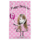 Cute stick-flicka med polka-punktklänning, pärlhalsband och sensorer med rosa ballong, hår på polka-punktbakgrund i tio år. Åldersnumret kan redigeras eller tas bort.