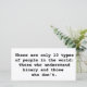 Det finns bara 10 typer av människor i världen: de som förstår binära och de som inte gör det.