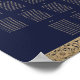 Denna bröllopsplatskarta har 10 bord. Bakgrunden är marinblå. Den har blomsterguldbårder med invecklad vildrosordekorationer. Namnen på bruden och brudgummen och titeln Välkommen är skrivna med en elegant kalligrafisk stil, resten i versaler. All text kan anpassas och har en guldfärg som liknar de gyllene rosorna på kanterna. De gyllene rosornas dekorationer är från ett vintagebokomslag från 1912, av The Complete Poetical Works av Geoffrey Chaucer, nu i public domain.