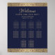 10 stols Navblå bröllopsplatskarta med guldrosor Poster