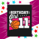 Den här basketbollens födelsedagsfest är perfekt för en 11-årig flickas födelsedagsfest att fira sin 11-årsjubileum! Underbar för barn att kärlek ska spela basketboll, titta på basketboll eller framtida basketstjärnspelare! Har en basketbild med nummer 11 för en flickas 11-årsdag.