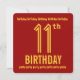11-årsfest Modern röd och guld Denna moderna design är ett roligt sätt att inbjuda folk till en födelsedagsfest för en preteenpojke som fyller elva. All text är anpassningsbar. Jag rekommenderar denna design på ett isfärgat metalliskt papper som ger din inbjudan en festlig glans och lyster.