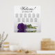 Elegant bröllop har 11 bord, var och en med 10 platser, med sammanlagt 110 gäster. Konstruktionen utstrålar romantik, sofistikering och skönhet och visar en enda djup lila färgad ro som ljuger på sin sida och reflekterar i vatten bassäng. Diagrammets titel: "Välkommen! Hitta din Bord," skrivs i finare-skriptkalligrafi och lämnar gott om utrymme för parets namn och bröllop-datum vid grund. Det här sätesschemat fungerar som en välkomstgest för din bröllopsmottagning och hjälper gästerna att enkelt hitta sina platser.