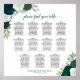 11 Bordsmaragd Blommig Bröllops Placeringsplan Poster