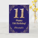 11:e födelsedag Blått och Guld Glitter Ram Kort