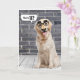 Golden-hämtaren bar en rolig mustasch mask på grått-tegelväggen och trä golv med tal-bubblor i 11:e födelsedag. Kan ändras för vilken ålder som helst. Text och namn kan redigeras.