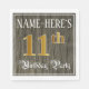 Den här opulenta och lyxiga födelsedagstecknet papper napkin-designen har ett redigerbart namn och meddelandet "11:e Födelsedagsfesten". Det stora antalet "11:e" har en imitation/faux guld-inspirerad färgning av mönster, och ord "Födelsedagsfest" finns i texten finare-skript-stil. Bakgrunden har en faux/imitation woodgrain-inspirerad mönster. Finare, elegant pappra blöjor av detta slag kan användas vid en födelsedagsfest/firande som hålls i firande på någons elfte födelsedag. [~Z0000566]