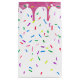 Färgfyllda godissprinkler på vitt med droppande rosa-isbildning under 11 års födelsedag. Bakgrunden till färg kan ändras. Text kan redigeras.