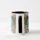 ett mugg med en bild av en hiker-logotyp på en barkbakgrund.