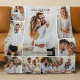 Create a timeless keepsake with this personalized wedding photo collage blanket featuring 11 custom photos arranged in a clean, modern grid layout. Designed for couples who want to preserve their favorite wedding memories in a meaningful and beautiful way, this custom blanket includes a large central image surrounded by 10 smaller photos, showcasing the most cherished moments from your big day. Elegant typography highlights the couple’s names and wedding date for a classic, romantic touch. Perfect as a unique wedding gift for newlyweds, a sentimental anniversary present, or a thoughtful keepsake for parents of the bride and groom, this photo throw blanket combines comfort and emotion in one unforgettable piece. The neutral white borders keep the focus on your images, making it ideal for display or daily use. Whether used to commemorate your wedding day, engagement, or vow renewal, this custom photo blanket is a heartfelt way to celebrate love, commitment, and shared memories in a luxurious, personalized form.