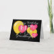 En födelsedaghälsning för sondotter 11th födelsedag med en svart bakgrund, gultballonger och rosa hjärtor. Några originalartwork©delightful-klotter