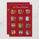 Baserat på den välkända julen sång, "De 12 juldagarna", har den här söta, visuella designen en verklig menagerie med olika djur. På framsidan av detta kort visas var och en av bilder under de tolv dagarna i ett kollageformat med motsvarande nummer i stor populär typografi och motsvarande text i mindre dekorativ typografi för synligt intresse. I den här versionen av formgivningen, som extra, visas ord, "12 dagar jul" i typsnitt ovanför bilder. Kortets baksida innehåller texten "God jul och Gott nytt år" i populär skripttypografi, följt av två "från" linjer som du kan anpassa.