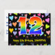Framsidan av denna spännande, kärleksfulla och roliga födelsedagstema postkort design har ett stort nummer "12" med ett regnbågsspektrum gradientinspirerat mönster. Den har också meddelandet "Grattis på 12-årsdagen," och ett anpassningsbart mottagarnamn. Framsidan har dessutom ett livfullt och färgglatt mönster av kärleksfulla hjärtrymder. Baksidan har ett redigerbart födelsedagsgratulationsmeddelande, eller kan rensas och lämnas tomt om ett meddelande ska skrivas för hand istället. Ett personligt födelsedagskort som detta kan vara ett roligt sätt att skicka ett meddelande för att fira någon på deras tolfte födelsedag. Postkort som detta kan också användas för att bjuda in gäster till en födelsedags