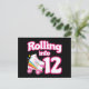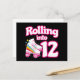 Denna skridskofestdesign är perfekt för en rullskridskofest eller födelsedagstema för en 12-årig flicka. Om födelsedagsflickan älskar att rullskridsko kommer hon att ÄLSKA denna skridskofestdesign! Funktioner retro stil 'Rullar in i 12' födelsedagscitat med cool rullskridskografik med regnbågar & stjärnor som är roligt & unikt. Rolig rullskridskofestdesign för en flickas 12-årsdag!